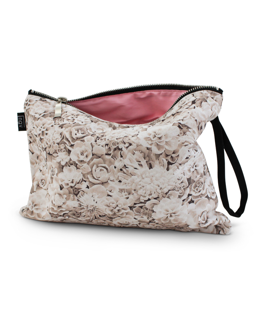 -Porcelain Flowers canvas Clutch with pastel pink lining
